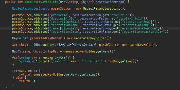 현재 프로젝트에 적용되어 있는 클래스는 NamedParameterJdbcTemplate이기 때문에 밑의 내용으로 Generated Key를 구현