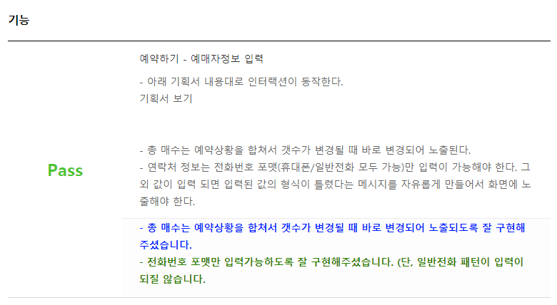 - 예매자 정보를 입력하고 총매수가 변경되는 것이 영상에 보여야 함.