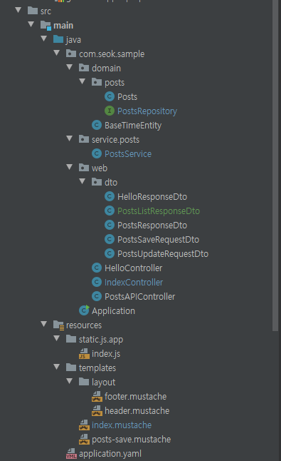 - postsService.findAllDesc()로 가져온 결과를 posts로 index.mustache에 전달