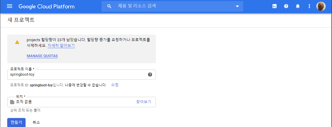 - 구글 서비스 신규 서비스 생성