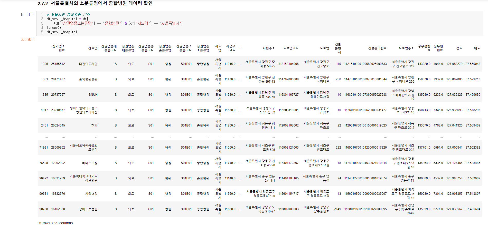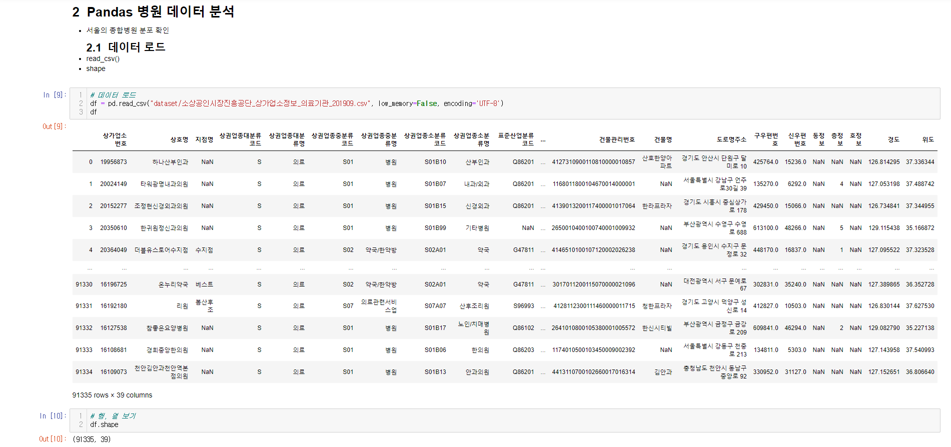 - 서울시 종합병원 데이터 분석