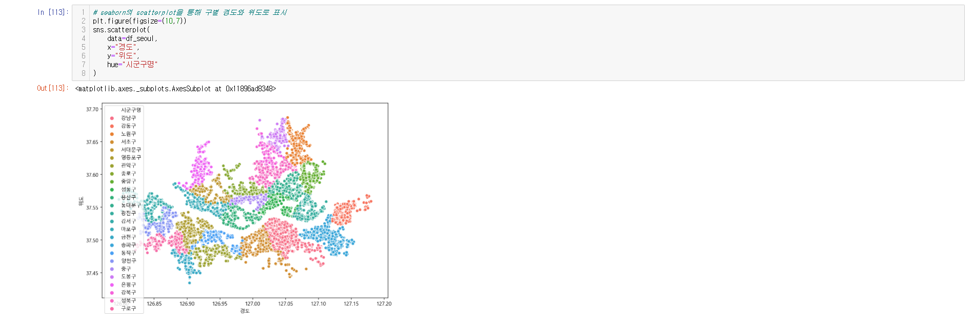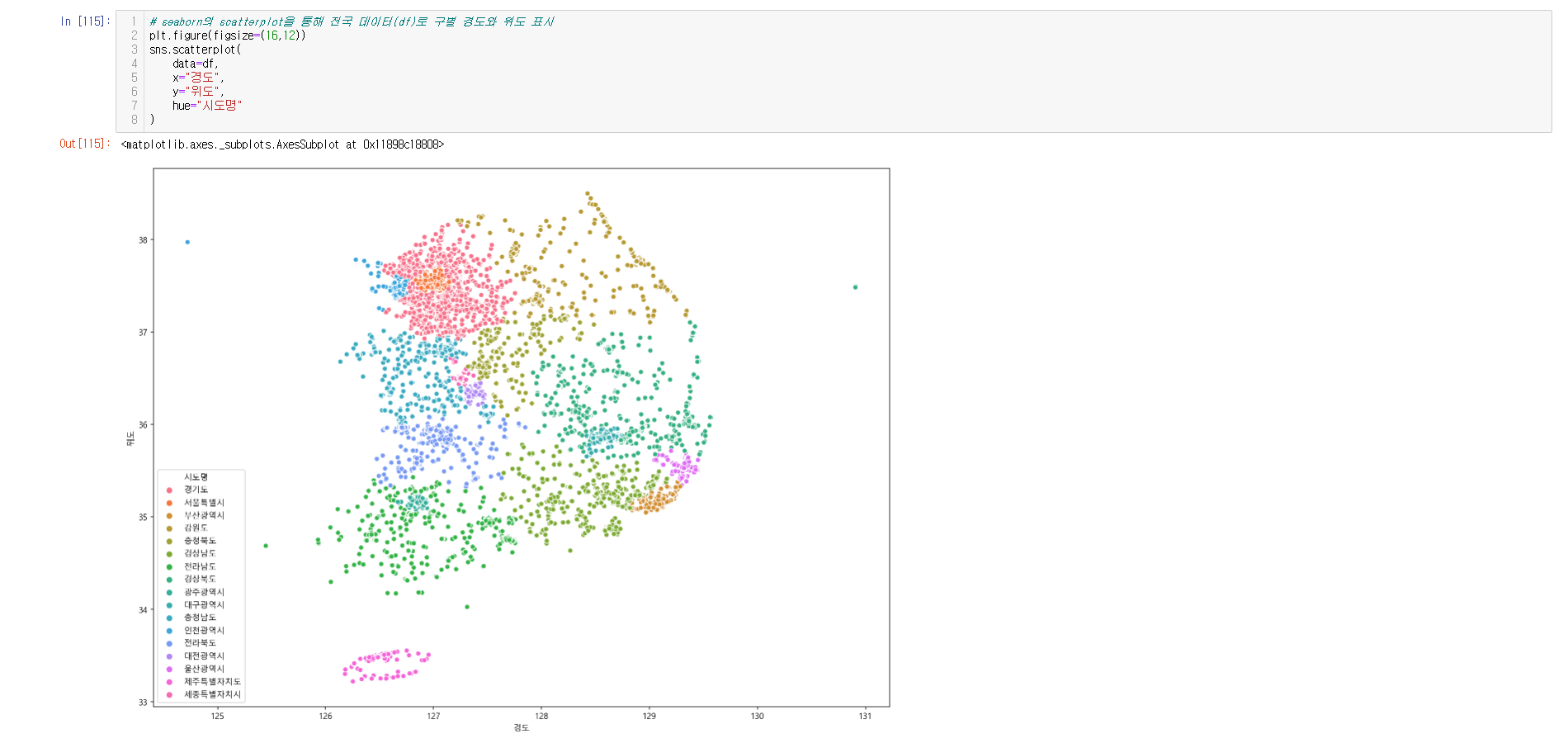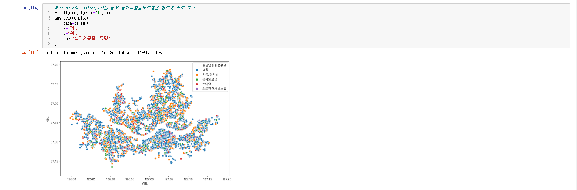 - 데이터 시각화 ( seaborn, scatter, folium )