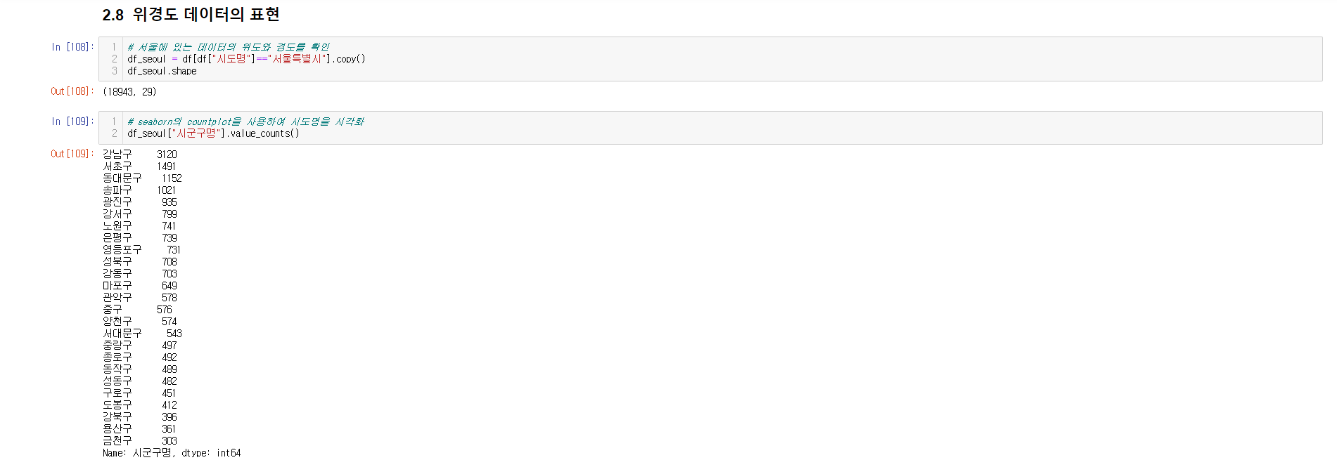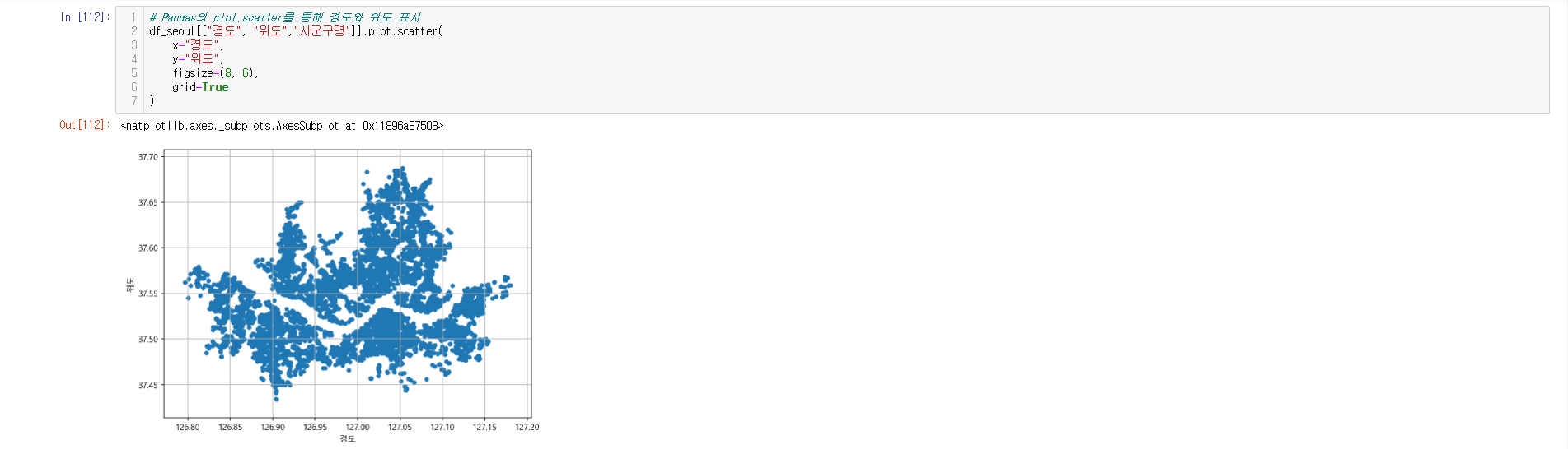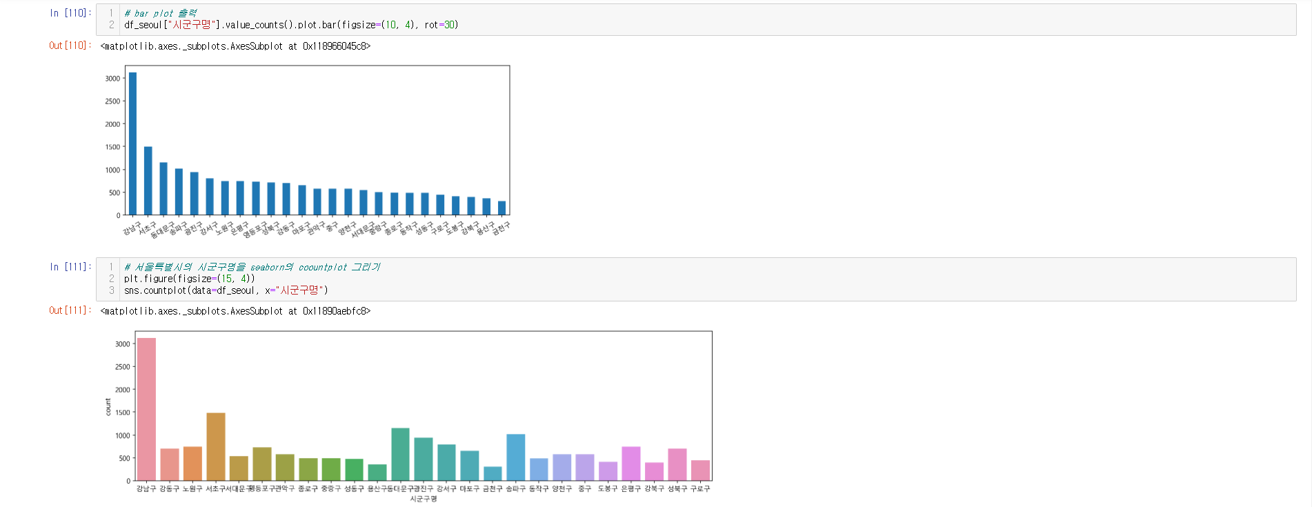 - 데이터 시각화 ( seaborn, scatter, folium )