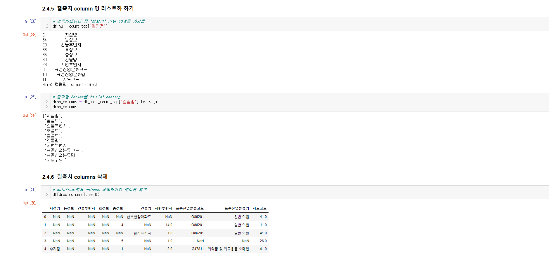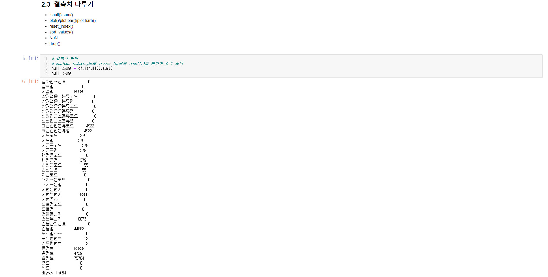 - 전처리 ( 불필요한 데이터 삭제, 결측치 컬럼 삭제유무 판단 )