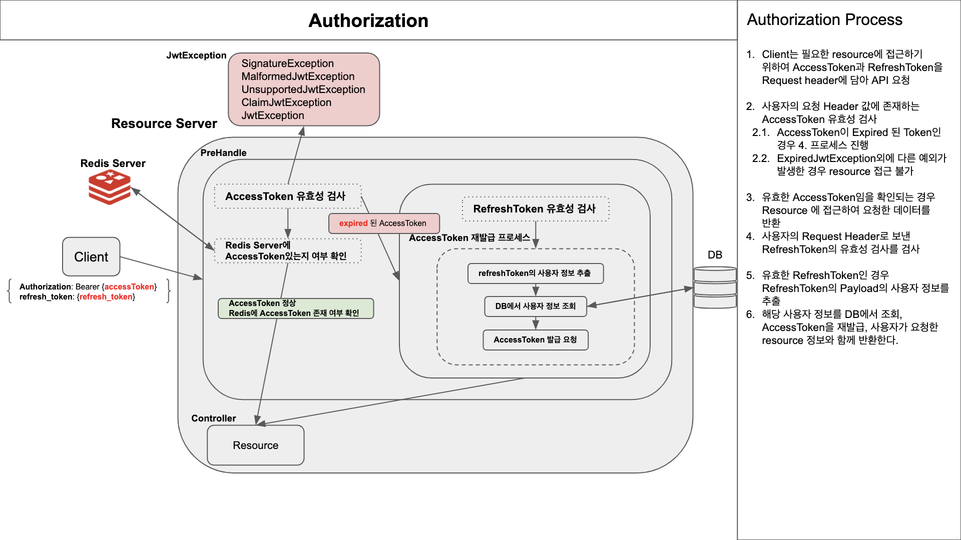 서버는 클라이언트에서 요청을 받을 때 마다, 해당 토큰이 유효하고 인증되었는지 검증을 하고, 사용자가 요청한 작업에 권한이 있는지 확인하여 작업을 처리